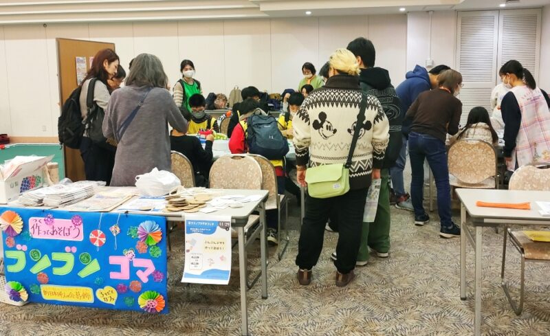 2階大ホールでは、無料の子どもたちの遊びのブースがいっぱい。